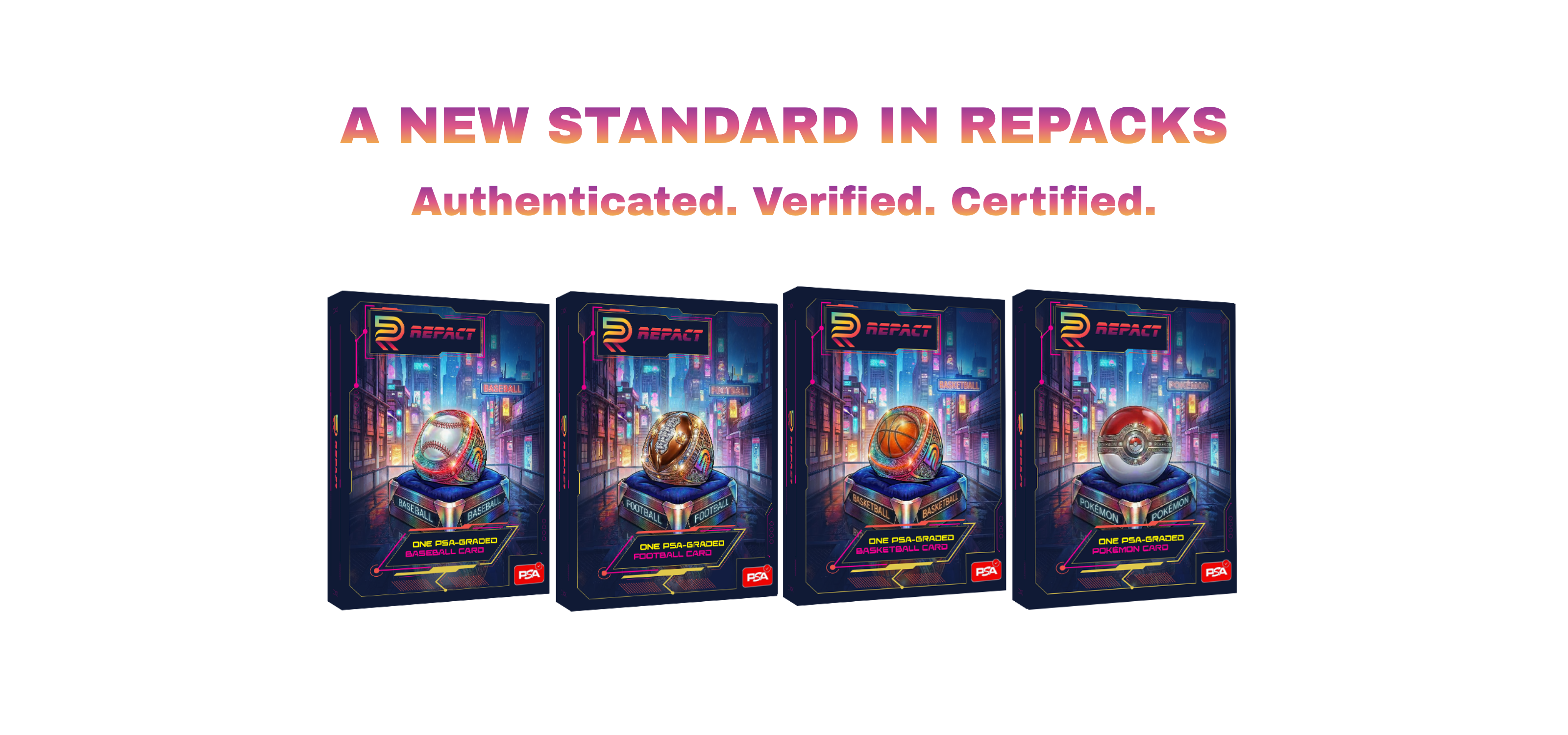 REPACT is a repack certified by PSA, offering high-transparency, trustworthy "mystery" products.