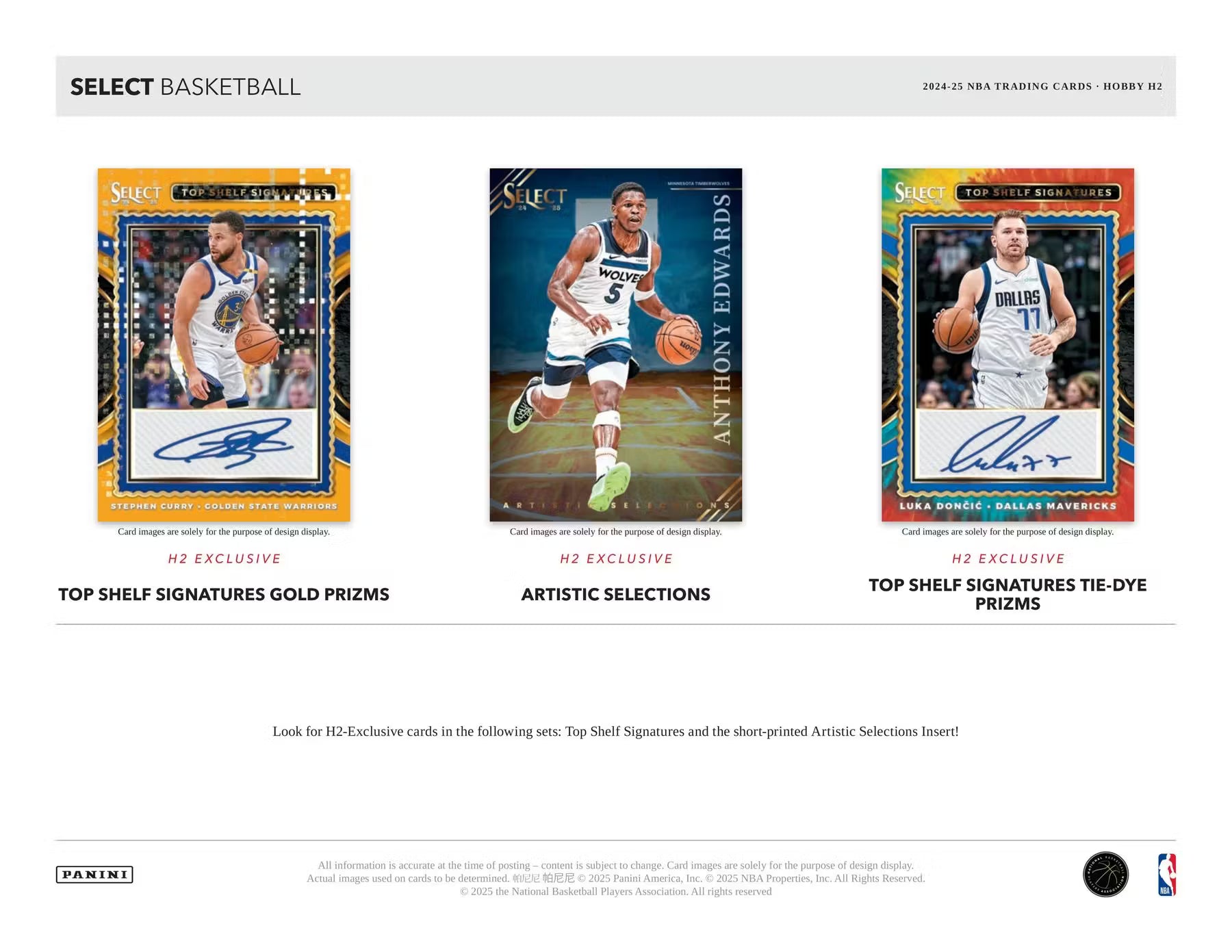 - Look for H2-Exclusive cards in the following sets: Top Shelf Signatures and the short-printed Artistic Selections Insert!